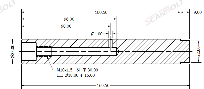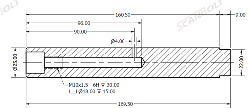 Bult Ø25x169,50L med smörjning