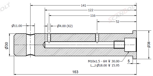 Robust härdad stålbult/axel av hög kvalitet, lämplig för entreprenadmaskiner och andra krävande arbeten där hög styrka och hållbarhet krävs. Bulten är tillverkad av härdat stål, vilket ger en slitstark yta och lång livslängd – även vid tung belastning.