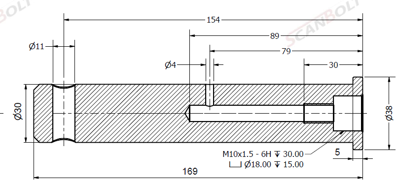 Robust härdad stålbult/axel av hög kvalitet, lämplig för entreprenadmaskiner och andra krävande arbeten där hög styrka och hållbarhet krävs. Bulten är tillverkad av härdat stål, vilket ger en slitstark yta och lång livslängd – även vid tung belastning.