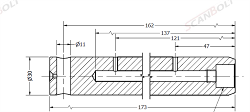 Robust härdad stålbult/axel av hög kvalitet, lämplig för entreprenadmaskiner och andra krävande arbeten där hög styrka och hållbarhet krävs. Bulten är tillverkad av härdat stål, vilket ger en slitstark yta och lång livslängd – även vid tung belastning.