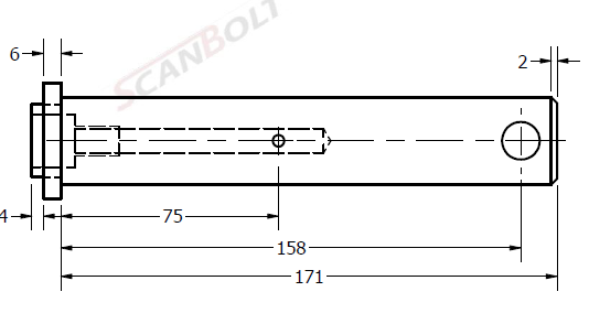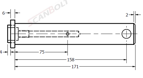 Robust härdad stålbult/axel av hög kvalitet, lämplig för entreprenadmaskiner och andra krävande arbeten där hög styrka och hållbarhet krävs. Bulten är tillverkad av härdat stål, vilket ger en slitstark yta och lång livslängd – även vid tung belastning.