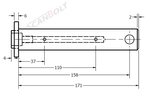 Robust härdad stålbult/axel av hög kvalitet, lämplig för entreprenadmaskiner och andra krävande arbeten där hög styrka och hållbarhet krävs. Bulten är tillverkad av härdat stål, vilket ger en slitstark yta och lång livslängd – även vid tung belastning.