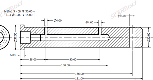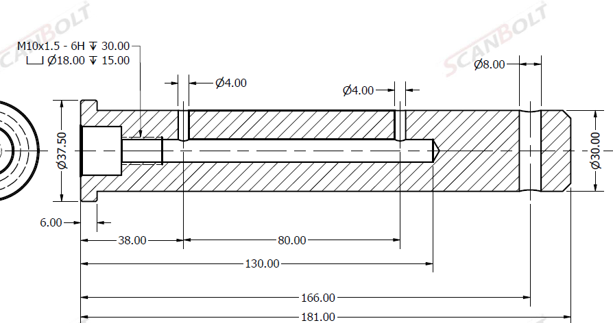 Bult Ø30x181L m. smörjning