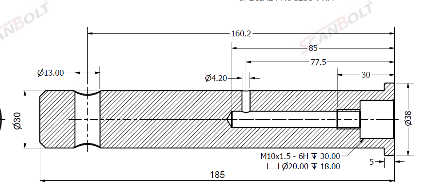 Robust härdad stålbult/axel av hög kvalitet, lämplig för entreprenadmaskiner och andra krävande arbeten där hög styrka och hållbarhet krävs. Bulten är tillverkad av härdat stål, vilket ger en slitstark yta och lång livslängd – även vid tung belastning.
