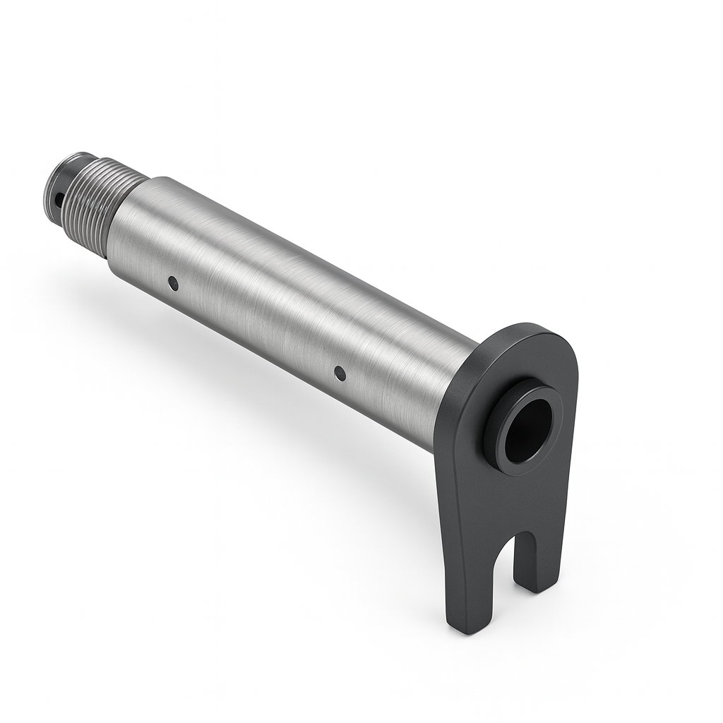 Robust härdad stålbult/axel av hög kvalitet, lämplig för entreprenadmaskiner och andra krävande arbeten där hög styrka och hållbarhet krävs. Bulten är tillverkad av härdat stål, vilket ger en slitstark yta och lång livslängd – även vid tung belastning.