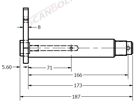 Robust härdad stålbult/axel av hög kvalitet, lämplig för entreprenadmaskiner och andra krävande arbeten där hög styrka och hållbarhet krävs. Bulten är tillverkad av härdat stål, vilket ger en slitstark yta och lång livslängd – även vid tung belastning.