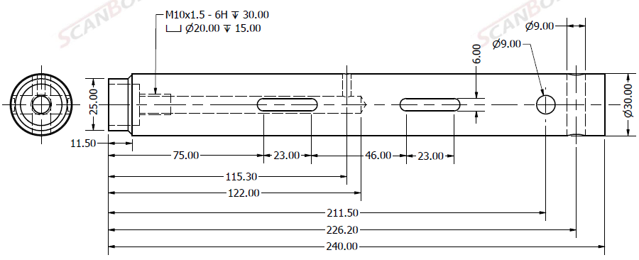 Robust härdad stålbult/axel av hög kvalitet, lämplig för entreprenadmaskiner och andra krävande arbeten där hög styrka och hållbarhet krävs. Bulten är tillverkad av härdat stål, vilket ger en slitstark yta och lång livslängd – även vid tung belastning.