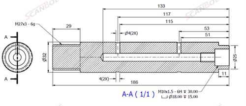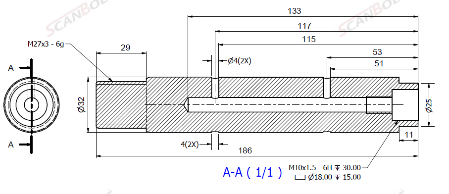 Bult Ø32x186L m. smörjning & u. låshål