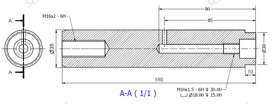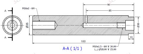 Ø35x180L m. smörjning & u. låshål