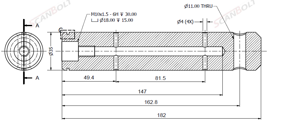 Bult Ø35x182L m. smøring & låsehul