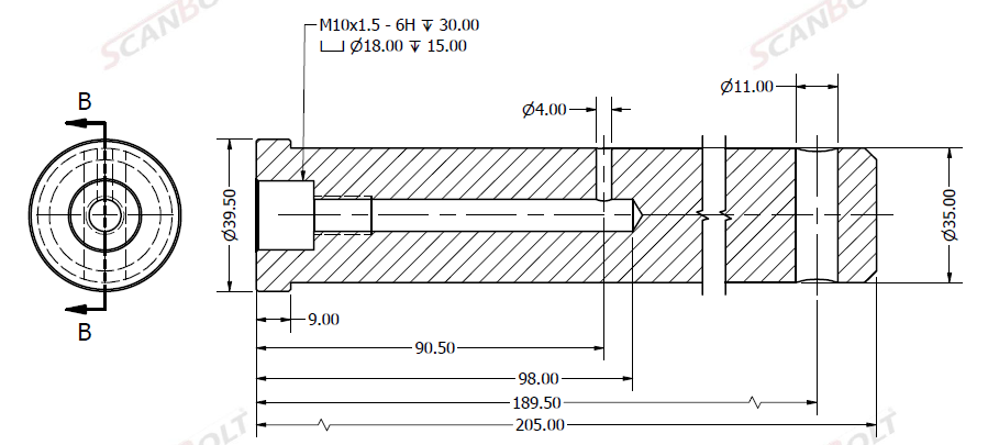 Bult Ø35x205L m. smörjning & låshål