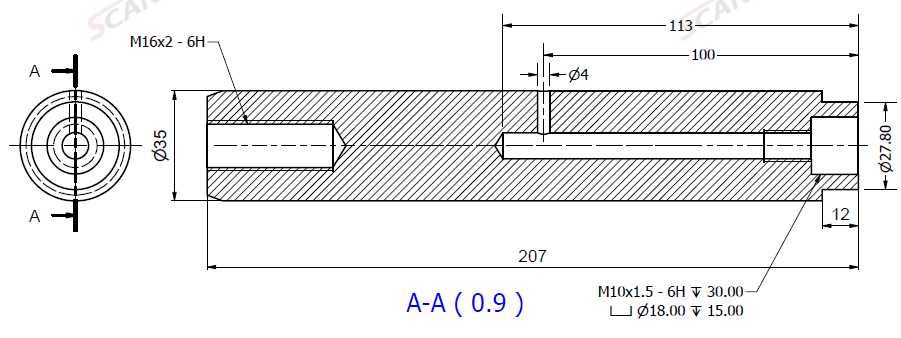 Ø35x207L m. smörjning & u. låshål