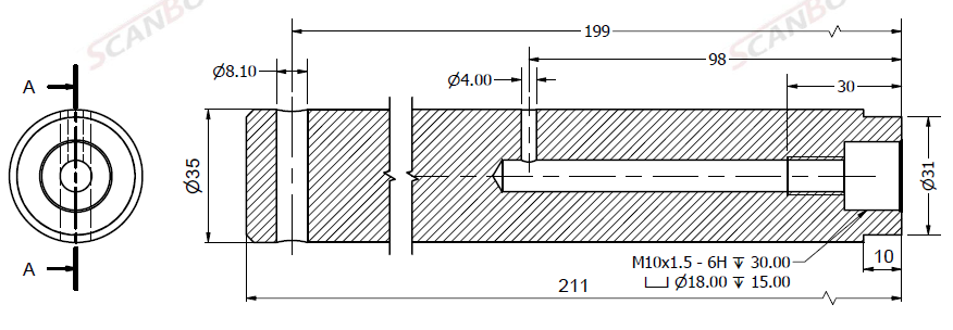 Bult Ø35x211L m. smörjning & låshål