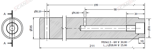 Ø35x211L m. smörjning & låshål