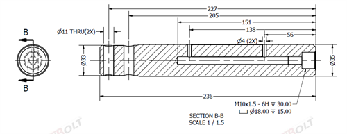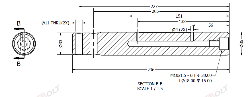 Robust härdad stålbult/axel av hög kvalitet, lämplig för entreprenadmaskiner och andra krävande arbeten där hög styrka och hållbarhet krävs. Bulten är tillverkad av härdat stål, vilket ger en slitstark yta och lång livslängd – även vid tung belastning.