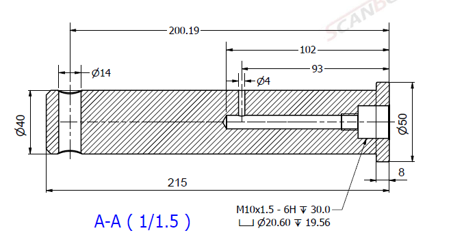 Bult Ø40x215L m. smörjning & låshål