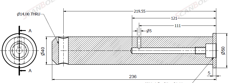 Robust härdad stålbult/axel av hög kvalitet, lämplig för entreprenadmaskiner och andra krävande arbeten där hög styrka och hållbarhet krävs. Bulten är tillverkad av härdat stål, vilket ger en slitstark yta och lång livslängd – även vid tung belastning.
