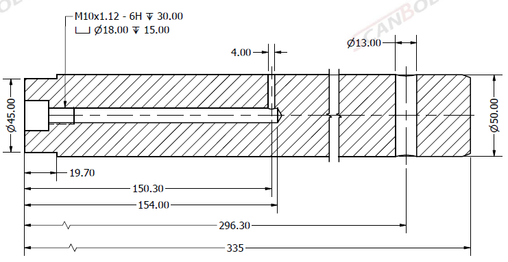 Bult Ø50x335L m. smörjning & låshål